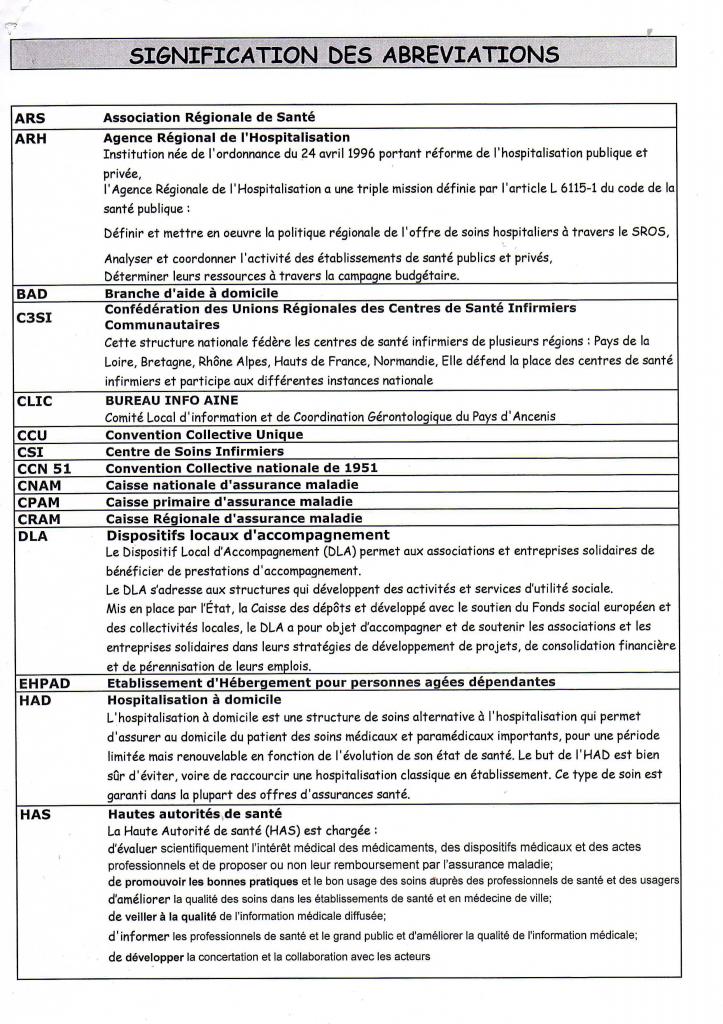 Vous trouverez ci dessous les Significations des différents sigles et Abréviations